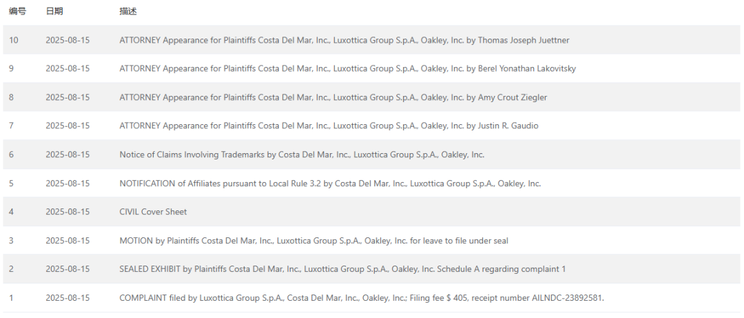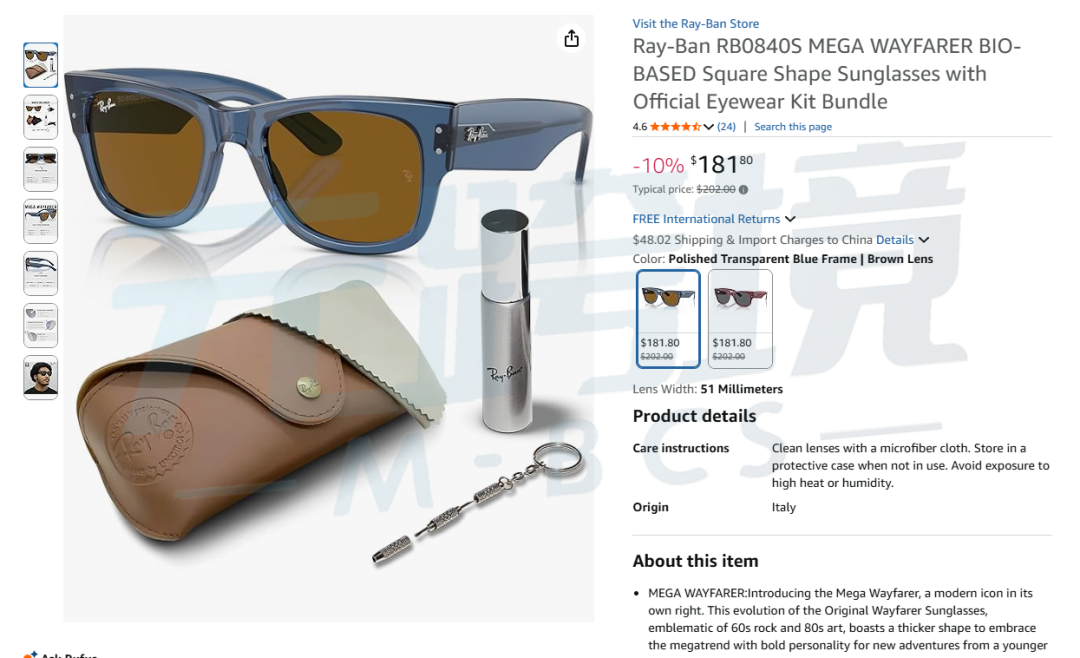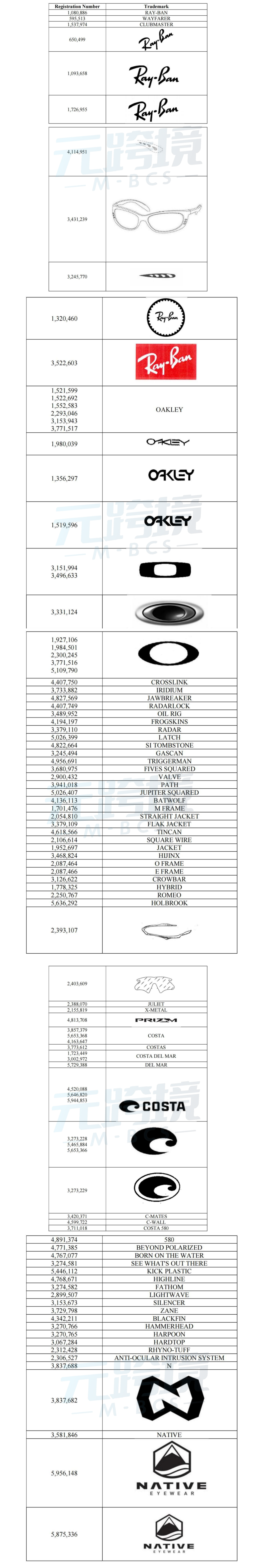 01案件基本信息原告品牌:Ray-Ban起诉时间:2025/08/15案件编号:25-cv-09765起诉类型:商标原告律所:GBC受理法院:伊利诺伊州北区地方法院04案件进展点击图片查看最新案件进展03品牌介绍Ray-Ban 的历史可以追溯到 1930 年,当时博士伦公司为美国空军生产了世界上第一副绿色镜片的太阳眼镜。这种眼镜不仅防眩光,还能有效阻挡紫外线,为飞行员提供了极大的视力保护。1936 年,博士伦将这种太阳镜推向市场,并于 1937 年正式更名为 “Ray-Ban”,意为 “阻挡光线”。在二战期间,Ray-Ban 成为美军的标准装备之一,并随着战争的结束迅速风靡全球。04维权信息本案为商标侵权,原告名下有多个商标,具体如下:05产品实例卖家自查是否在售相关产品,请及时下架如果您不幸收到TRO邮件,店铺资金被冻结,可联系元跨境免费为您提供和解方案。如果委托元跨境为您进行和解服务,最终和解金额不接受,元跨境不收取您任何费用。