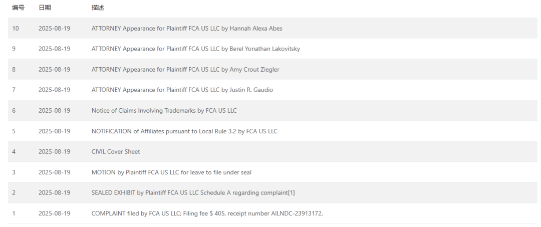 【25-cv-09913】旧案新发,CHRYSLER 克莱斯勒维权又来了!