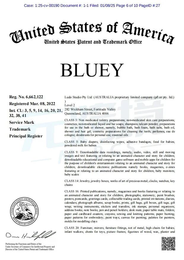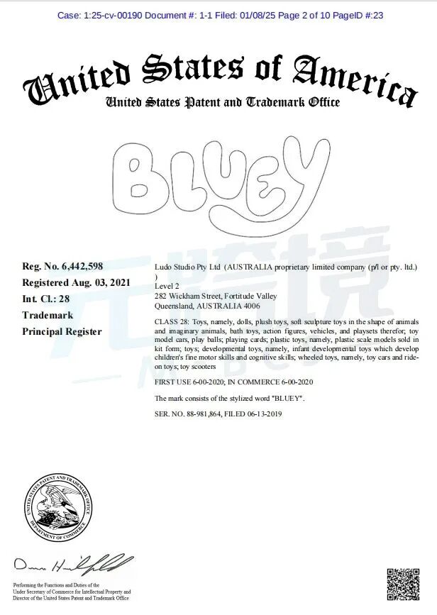 01案件基本信息原告品牌:Bluey 布鲁伊品牌方:BBC Studios Distribution Ltd起诉时间:2025/09/16案件编号:25-cv-11166起诉类型:版权、商标原告律所:GBC受理法院: 伊利诺伊州北区地方法院02案件进度点击图片查看最新案件进展03品牌介绍《Bluey》是一部澳大利亚学龄前动画电视剧,于2018年10月1日在ABCKids首播,该节目由Joe Brumm创建,由昆士兰州的Ludostudio公司制作。它由澳大利亚广播公司和英国广播公司委托,BBC工作室拥有全球发行和销售权。该系列在美国的DisneyJunior上首映,并在Disney+上国际上发行。04维权信息本次维权为商标+版权维权,涉及到原告名下多个商标以及相关形象,跨境卖家注意未经授权不得随意使用05产品实例卖家自查是否在售相关产品,请及时下架如果您不幸收到TRO邮件,店铺资金被冻结,可联系元跨境免费为您提供和解方案。如果委托元跨境为您进行和解服务,最终和解金额不接受,元跨境不收取您任何费用。