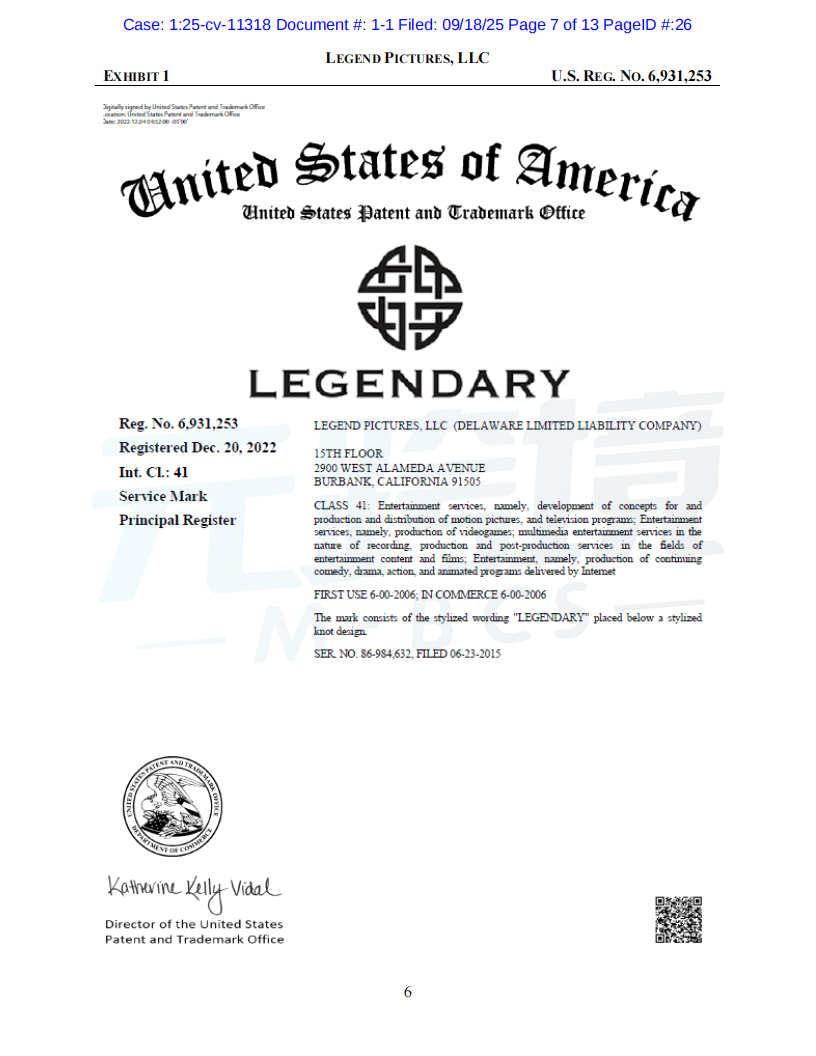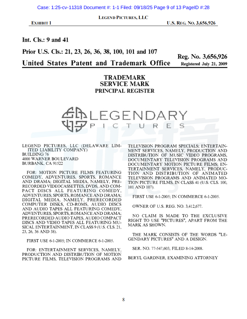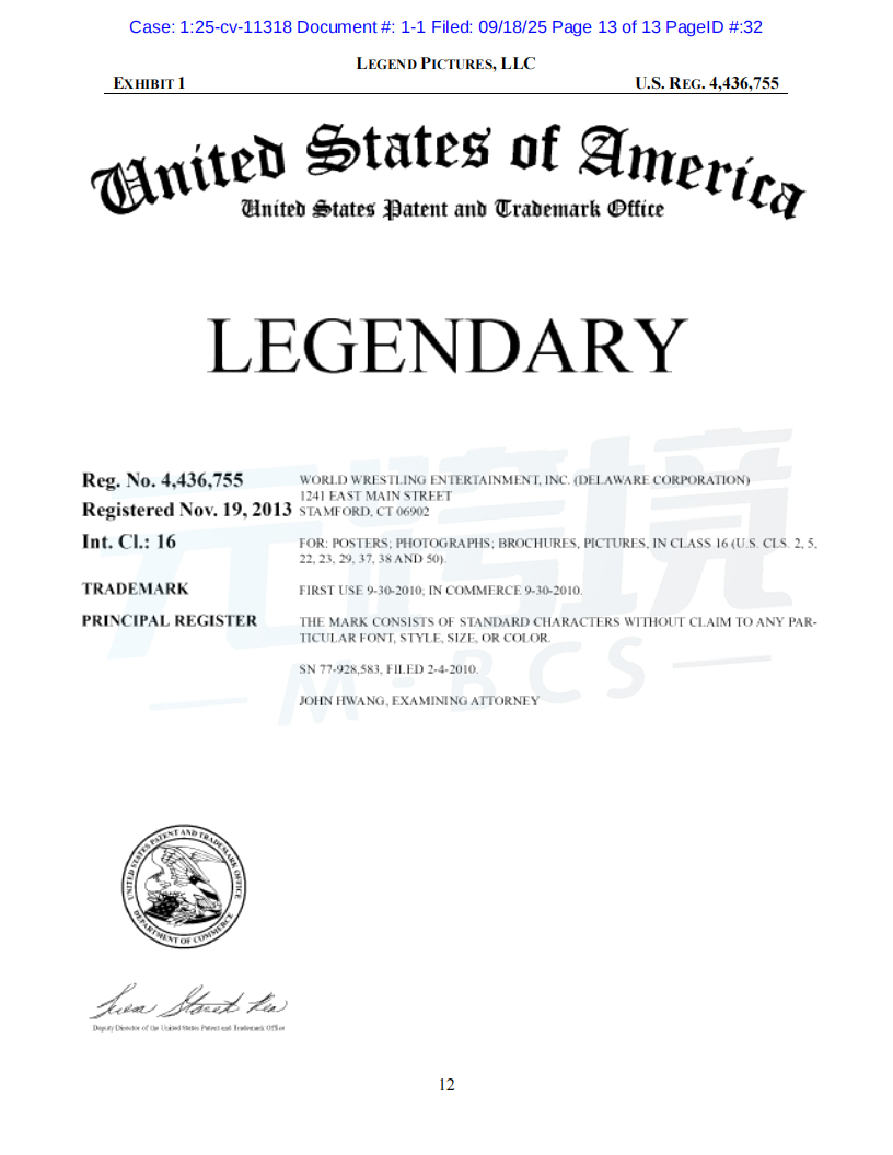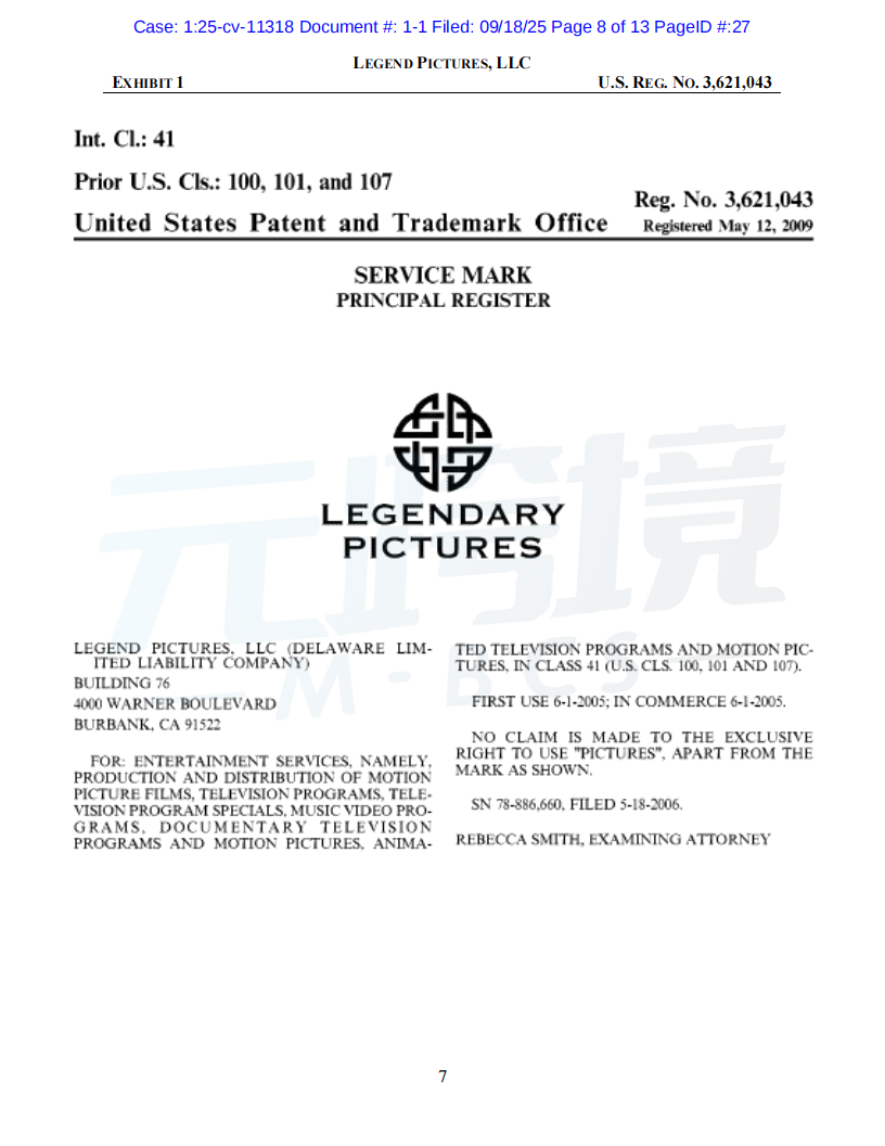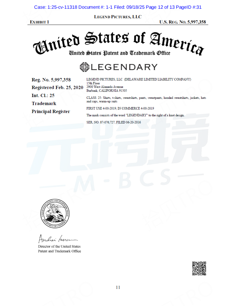 01案件基本信息原告品牌:Dune品牌方:Legend Pictures, LLC起诉时间:2025/09/18案件编号:25-cv-11318起诉类型:商标原告律所:Sullivan & Carter LLP受理法院: 伊利诺伊州北区地方法院02案件进度点击图片查看最新案件进展03品牌介绍原告传奇影业(Legend Pictures, LLC)是一家成立于2000年的美国媒体公司,总部位于加利福尼亚州伯班克。作为全球领先的内容制作和发行公司,传奇影业制作的电影在全球的票房收入已超过200亿美元。其中,《沙丘》(Dune)系列电影是其代表作之一,该系列在全球获得了超过10亿美元的票房,并拥有庞大的粉丝群体和广泛的衍生商品市场。传奇影业拥有“Dune”和“Legendary”等多个联邦注册商标,以及相关电影的版权。公司通过授权的方式,在全球范围内推广和销售正版周边商品。04维权信息本次维权为商标维权,涉及到原告名下多个商标,跨境卖家注意未经授权不得随意使用05产品实例卖家自查是否在售相关产品,请及时下架如果您不幸收到TRO邮件,店铺资金被冻结,可联系元跨境免费为您提供和解方案。如果委托元跨境为您进行和解服务,最终和解金额不接受,元跨境不收取您任何费用。